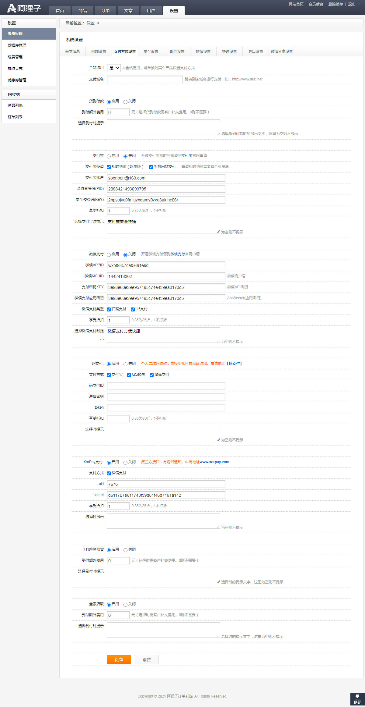 3.支付方式設(shè)置